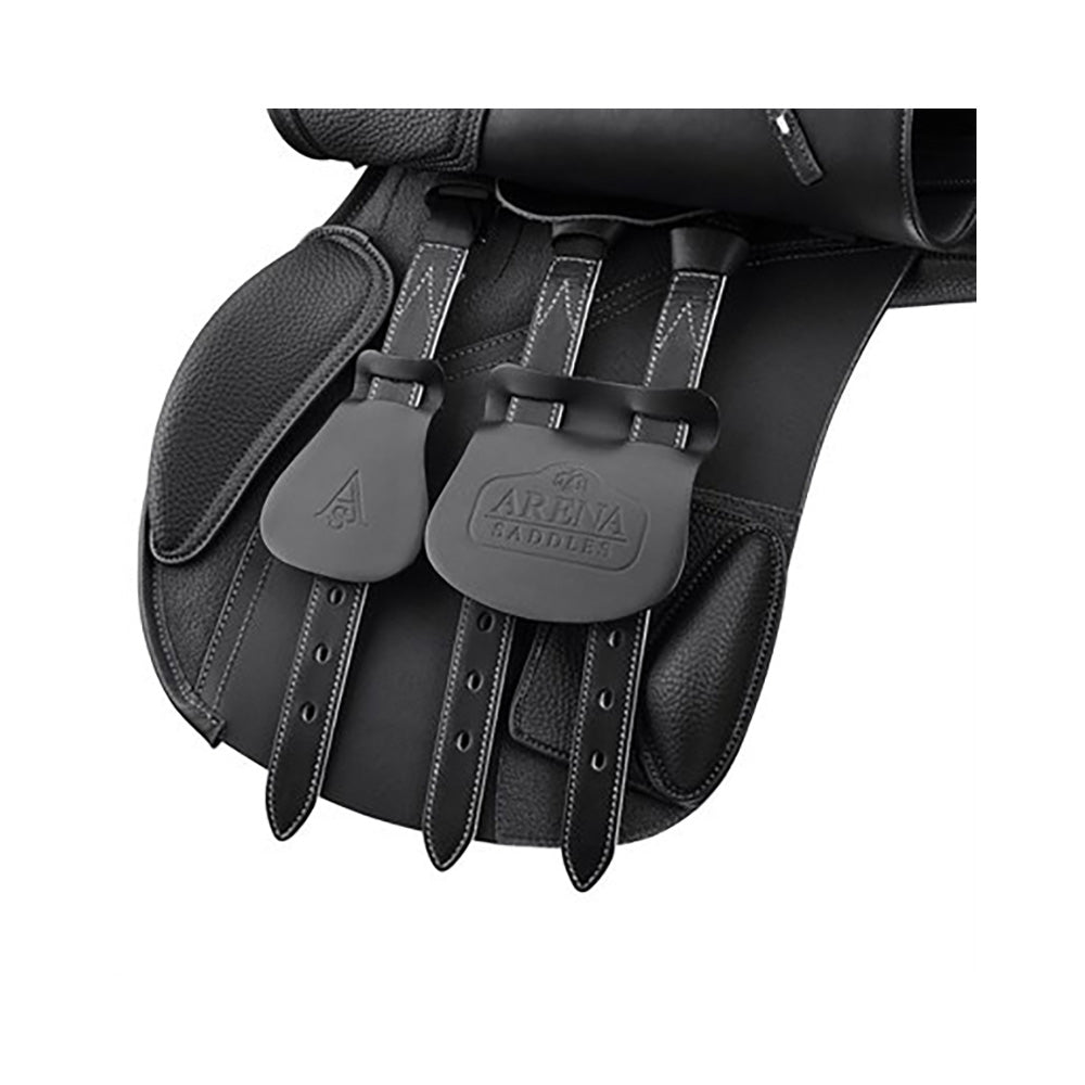 Arena satulassa on muokattavatt polvituet. Satulan istuinosassa ja pollvituissa on laadukasta nahkaa. Paneelit jotka ovat hevosta vasten on synteettinen materiaali joka tekee satulan kevyeksi ja on helppo puhdistaa.