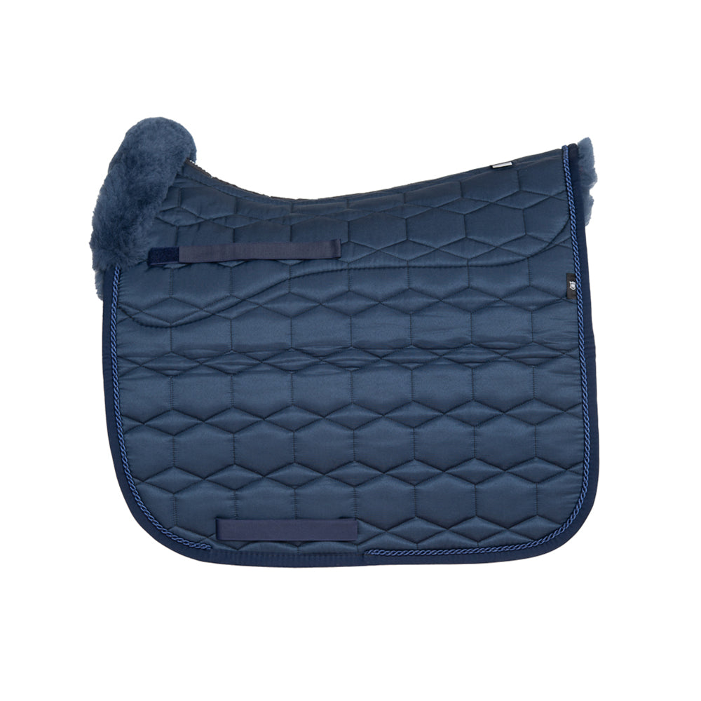 Kaunis kouluhuopa jossa lampaankarva hevosta vasten sekä etu- ja takatrimmissä . Huopa on napakkaa materiaalia joka istuu hyvin selkään sekä säilyttää muotonsa.