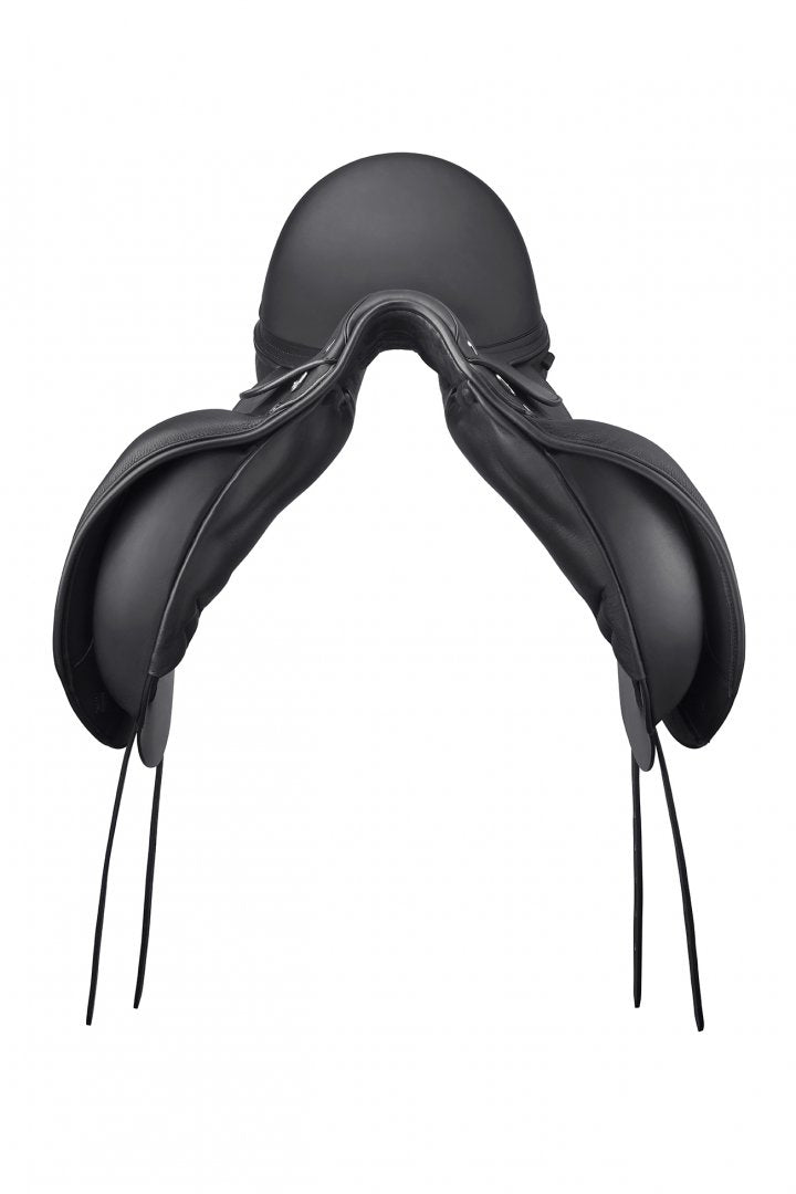 The saddle has a “unisex” tree, the first Dressage tree that makes it very comfortable for both male and female riders. It is offered with a stitching pattern and patent leather inserts that visually enhance the special features of this model (“pure” version, with no stitching and patent leather inserts on the cantle, available upon request). The technical features and feeling for the rider remain unchanged when compared to the previous versions: the back of the seat towards the cantle is significantly wider when compared to traditional Dressage saddles; the tree contains two enlarged membranes, obtained by applying the OTI (“Over Tree Injection”) technological procedure. The blocks are anatomically shaped for the horse. The front girth straps are secured using a heavy duty elastic, while the rear ones determine the balance of the saddle. The panels are shaped in the front to give unmatched freedom to the shoulders. The panels are also wider along their entire length to distribute the weight of the rider more evenly in a reduced space. The three withers sizes fit all horses. The saddle must be used with the 3F021 - Trapezium Pad for a perfect fit.