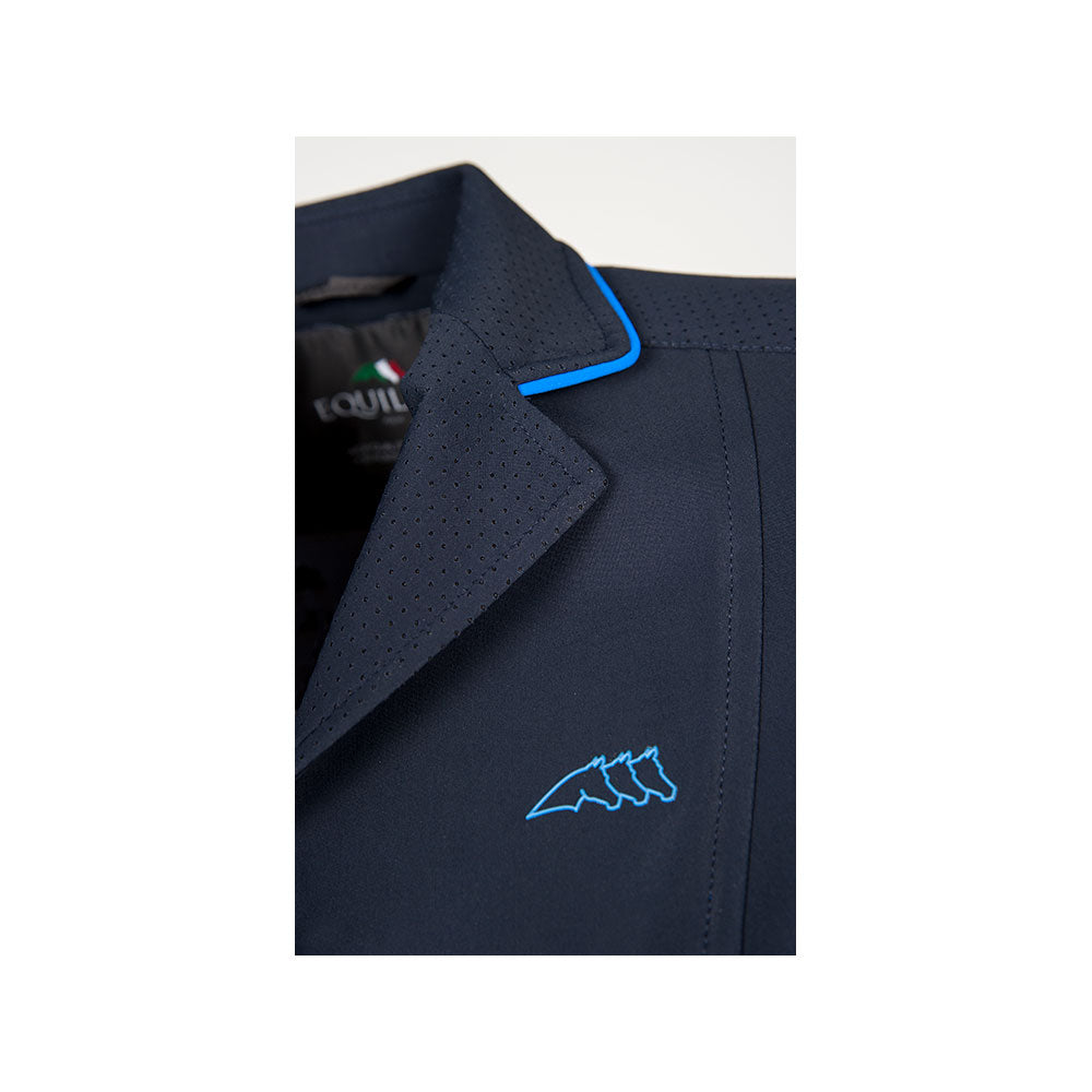 - X-cool bi-colour single breast competition jacket with microholed fabric inserts on collar, revers and front and back yokes.