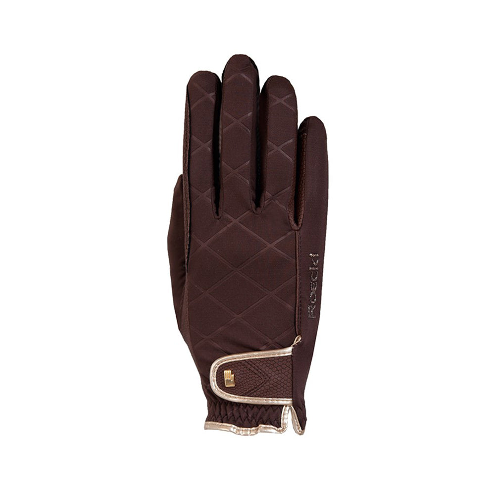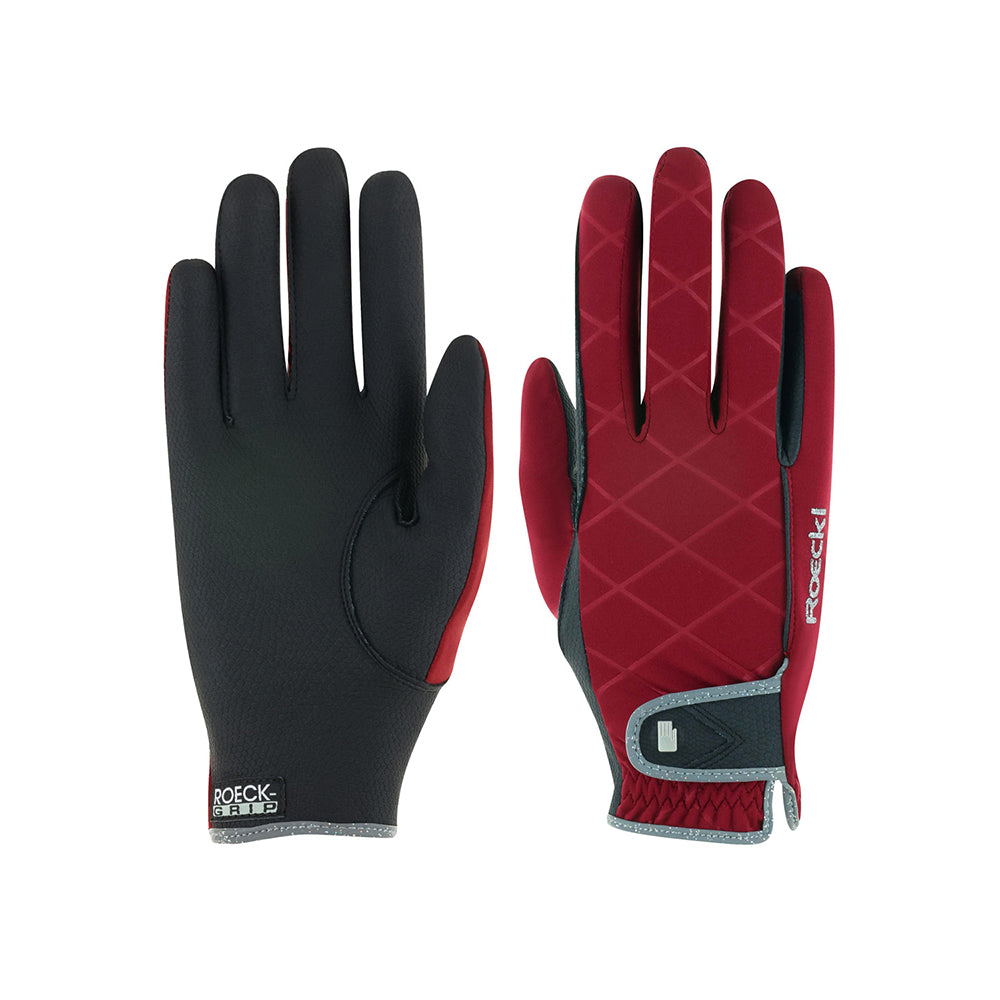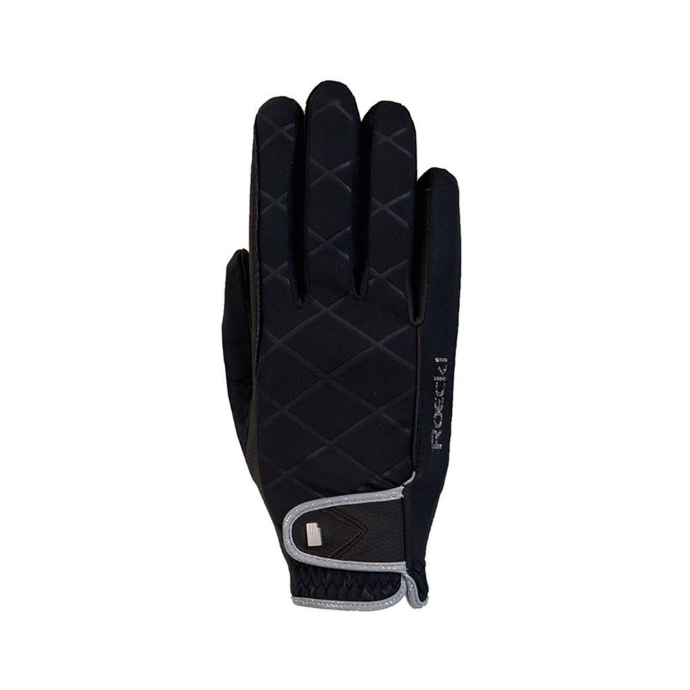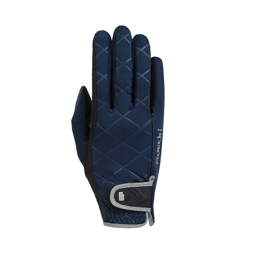 En ridhandske med en "wow"- effekt som är lika funktionell som snygg! Elegant och trendig design med känsla för stil, smäcker modell som sitter som en andra hud. Det beprövade Roeck-Grip materialet tillsammans med en varm fleecefodring gör den till den perfekta handsken för vår och höst med ett optimalt grepp om tyglarna. Roeck- Proof gör den vindtät. Har hög andas-funktion, sluter om handen och håller dig varm. Handsken har även Roeckls exklusiva Comfort Cut som ger en mycket bekväm passform. Sist men inte minst, piping och logga i glitter med en gnistrande effekt tillsammans med den snygga mönstrade designen ger denna handske en modern touch.