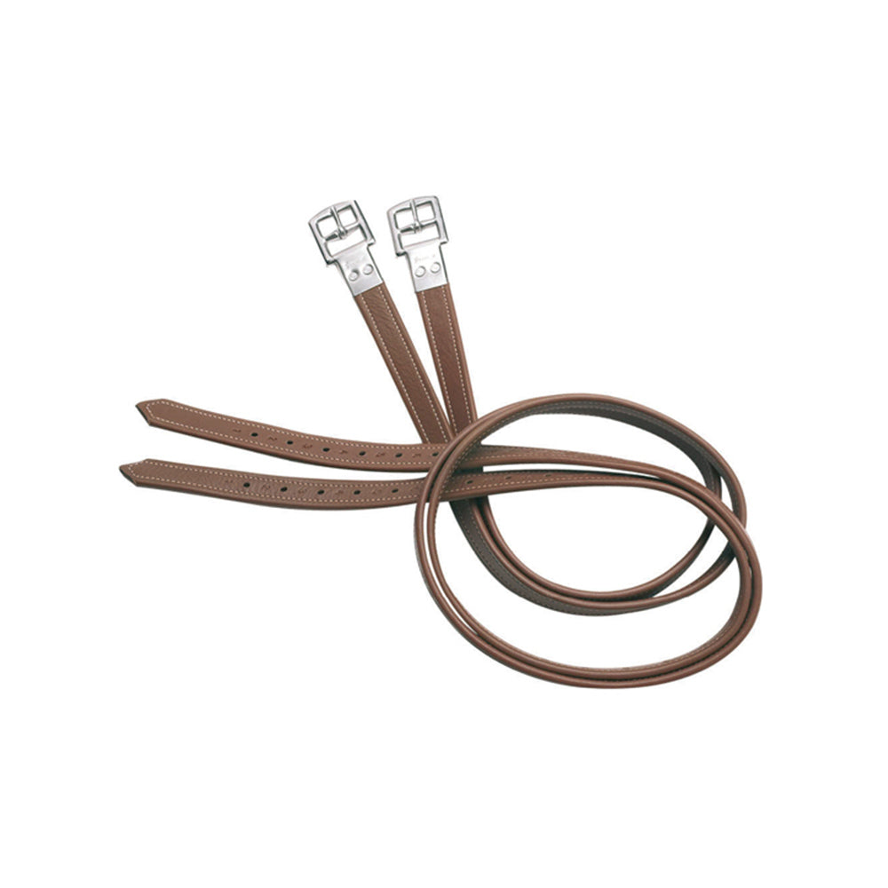 Laadukkaat ja pitkäikäiset Prestige-jalustinhihnat, jotka on valmistettu pehmeästä vasikannahasta ja vahvistettu sisäpuolelta nailonilla estämään venymistä. Hihnat säilyttävät muotonsa ja tukevat vakautta ratsastuksessa.